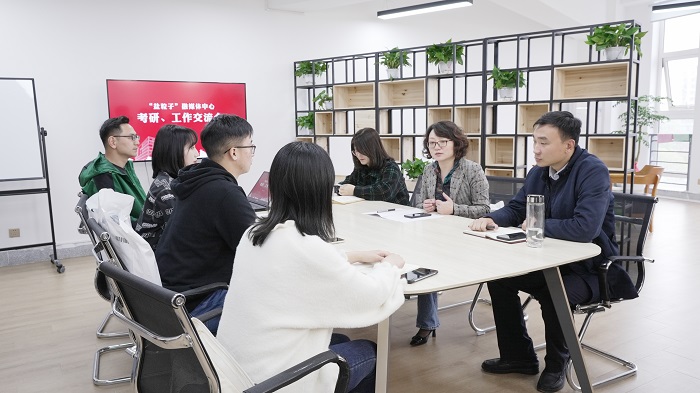 4月25日下午,校党委宣传部在南校区仁和楼C314召开融媒体中心学生考研分享与学习交流会,交流工作和学习体会,畅谈考研的成功心得。校党委常委、宣传部长韩雅丽,宣传部副部长刘荣,融媒体中心指导老师,考取上海海事大学硕士研究生、原“青衿湖畔”采编工作室负责人、经管学院B物管172班张杨熠,考取浙江工商大学硕士研究生、原大学生通讯社社长、经管学院B物管171班唐敏艺以及中心下辖学生组织负责人、学生干事代表等20余人参加座谈。