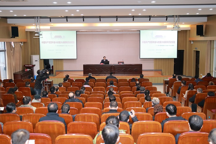 江苏省委宣讲团成员、淮阴师范学院党委常委、副校长韩同友教授作题为《中国共产党百年奋斗的重大成就和历史经验》的宣讲报告