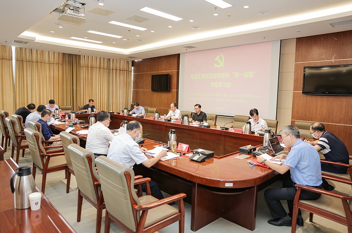9月16日上午,在希望大道校区行政楼9楼视频会议室,校党委常委会以“第一议题”形式,认真学习习近平总书记在中央全面深化改革委员会第二十七次会议上的重要讲话精神、给北京师范大学“优师计划”师范生重要回信精神。党委副书记、校长邵荣主持。党委副书记薛浩,党委常委、副校长崔刚、王资生,副校长、盐城市政协副主席丁成,副校长王伟,党委常委、纪委书记、省监委派驻监察专员陈伟,副校长张勤芳,党委常委、党委统战部部长姚军,党委宣传部等部门主要负责人参加。
