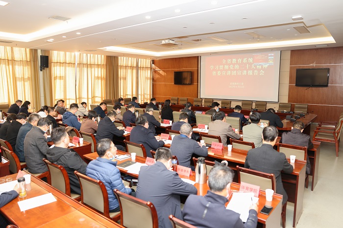 葛道凯强调,党的二十大报告有12处直接阐述教育,明确到2035年建成教育强国的总目标,对教育事业发展作出规划,全省教育系统要迅速兴起学习宣传贯彻的热潮,准确把握中国式现代化对强化党的领导提出的新要求,全面、系统、整体加强党对教育的全面领导;准确把握中国式现代化对建设高质量教育体系提出的新要求,全力办好人民满意的教育;准确把握中国式现代化对教育基础性、战略性基础作用发挥提出的新要求,更好服务构建新发展格局;准确把握中国式现代化对深化教育改革提出的新要求,全面深化教育综合改革;准确把握中国式现代化对教育优先发展地位提出的新要求,大力提升教育保障水平。要更加紧密地团结在以习近平同志为核心的党中央周围,坚定不移以习近平新时代中国特色社会主义思想为指导,深刻领悟“两个确立”的决定性意义,增强“四个意识”、坚定“四个自信”、做到“两个维护”,加强党对教育工作的全面领导,加快构建高质量教育体系,努力为中国式现代化建设提供高质量的人才支撑、作出新的更大贡献。