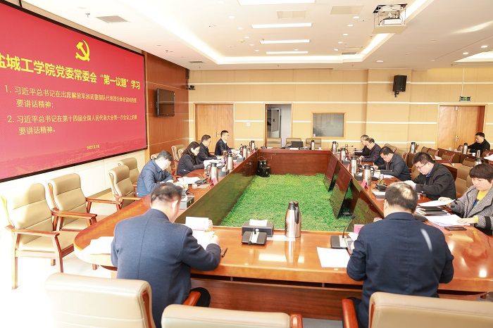 3月16日上午,在希望大道校区行政楼9楼视频会议室,校党委常委会以“第一议题”形式,认真学习习近平总书记在出席解放军和武警部队代表团全体会议时、在第十四届全国人民代表大会第一次会议上的重要讲话精神。