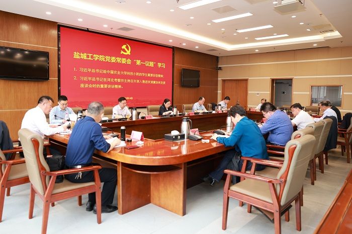 5月18日上午,在希望大道校区行政楼9楼视频会议室,校党委常委会以“第一议题”形式,认真学习习近平总书记给中国农业大学科技小院的学生重要回信、在河北考察并主持召开深入推进京津冀协同发展座谈会时的重要讲话精神。