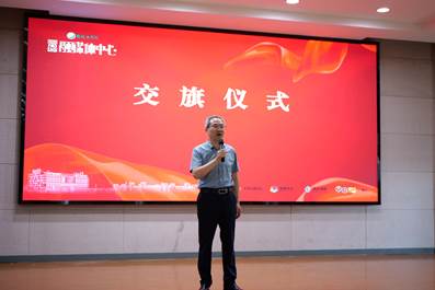 校党委常委、党委宣传部部长奚新国主持交旗仪式并讲话