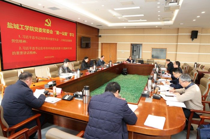 党委书记方海林主持。校长、党委副书记邵荣,党委常委、副校长王资生,副校长、盐城市政协副主席丁成,党委常委、副校长王伟,党委常委、党委统战部部长姚军,党委常委、党委宣传部部长奚新国出席,党办、校办、纪委机关等部门主要负责人参加。