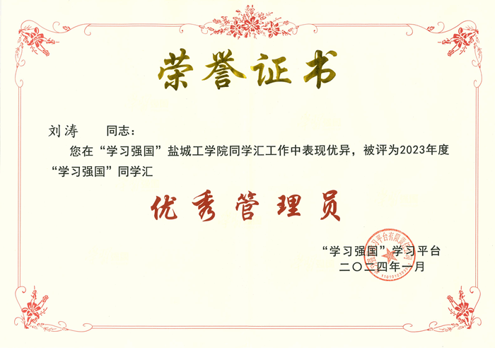 近日,“学习强国”全国平台从2023年同学汇发布的20000余条内容中,精选出200条作品,根据投票结果评选出人气作品Top100。我校作品《来自全国各地的6800余名本科生和446名研究生新生踏入盐工校园》入围。1名同志被评为优秀管理员。