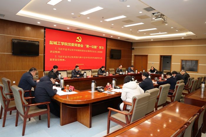 2月29日上午,在希望大道校区行政楼9楼视频会议室,校党委常委会以“第一议题”形式,认真学习习近平总书记在中央财经委员会第四次会议上的重要讲话、给美国马斯卡廷中学访华代表团学生重要复信精神。