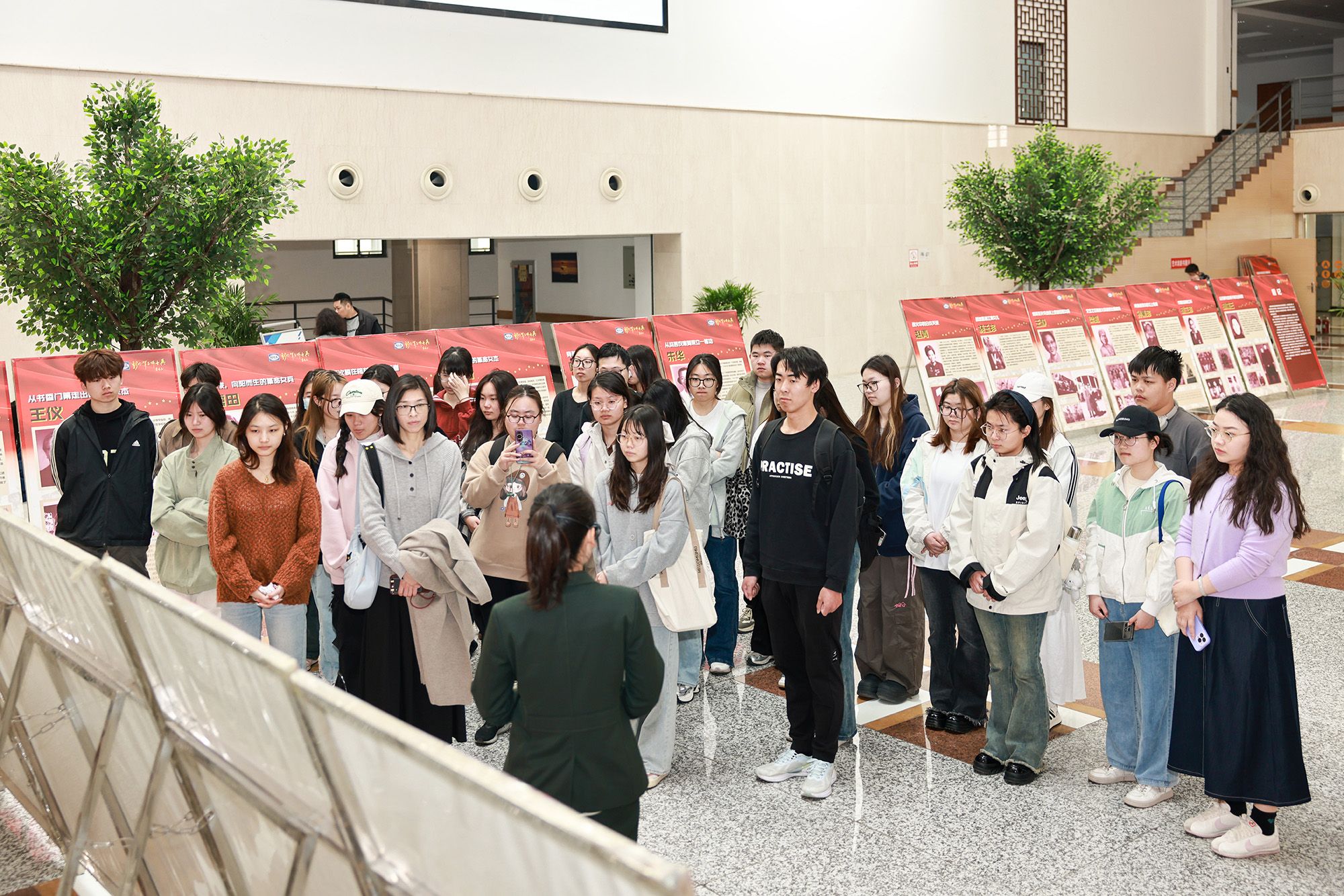今年是抗日战争胜利80周年,为铭记抗战历史,传承英雄精神,3月24日至25日,学校在希望大道校区图书馆二楼大厅,联合新四军纪念馆、滨海县新四军研究会,共同开展了馆学联动思政课 ——“战地红花 巾帼英豪”新四军三师女兵事迹展活动。新四军纪念馆讲解员潘晨霞到场讲解,校党委常委、宣传部部长奚新国出席,党委宣传部副部长赵迎华,数理学院、设计艺术学院的师生代表等,分四批次400余人参观了此次展览。