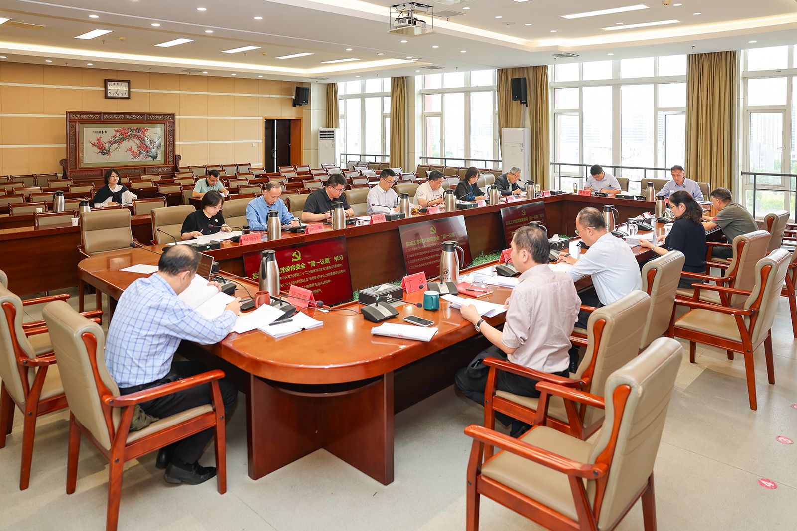 党委书记方海林主持。党委副书记、校长邵荣,党委副书记薛浩,副校长、盐城市政协副主席丁成,党委常委、副校长王伟,党委常委、纪委书记、省监委派驻监察专员陈伟,党委常委、副校长张勤芳、邢晓平,党委常委、统战部部长姚军,党委常委、宣传部部长奚新国,党委常委、组织部部长包雅玮,党办、校办、纪委机关等部门主要负责人参加。