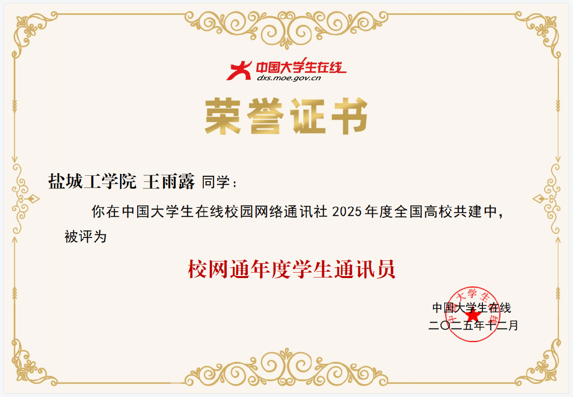 近日,教育部中国大学生在线公布2025年度表彰名单。我校凭借在网络思政、校园文化传播与融媒体内容建设中的突出成效,再次荣获2025年度校园网络通讯站称号;党委宣传部江莹被评为校网通年度指导教师;校融媒体中心通讯员,人文社会科学学院王雨露、王佳丽两名同学被评为校网通年度学生通讯员,实现集体与个人荣誉双丰收。