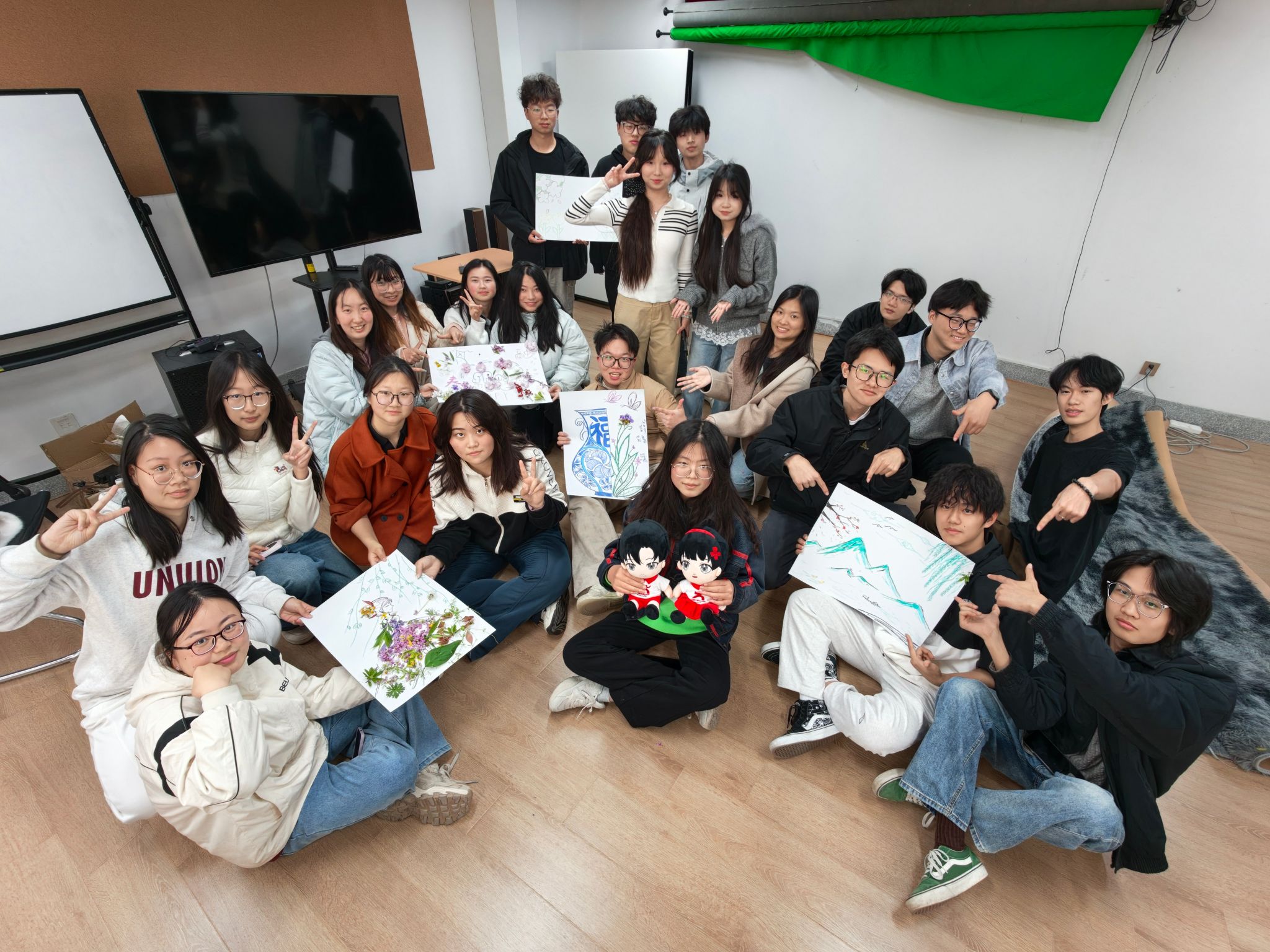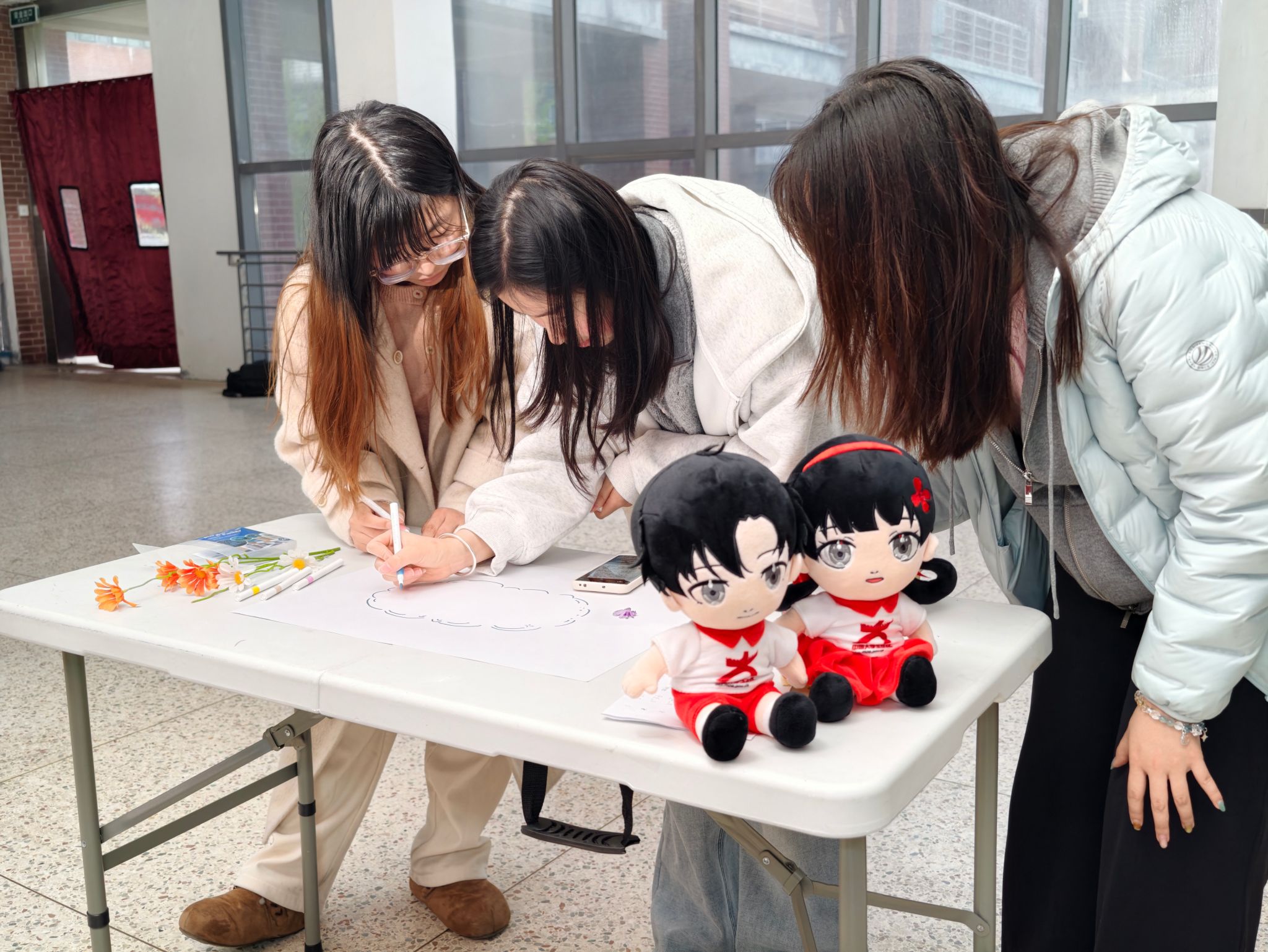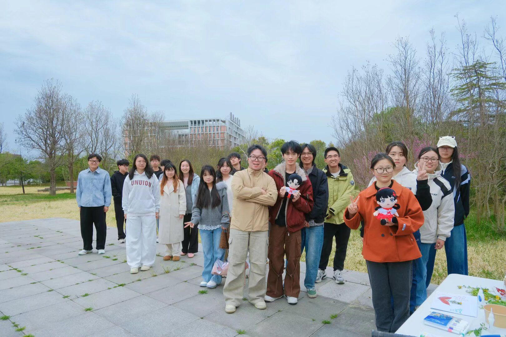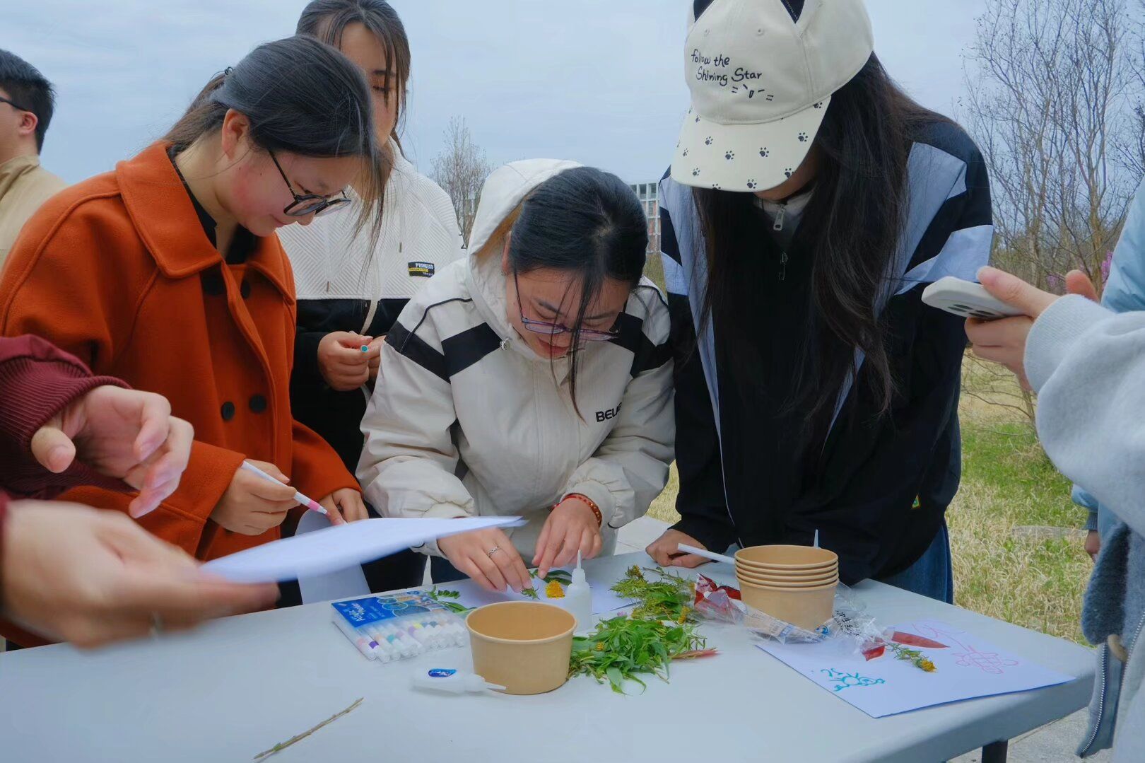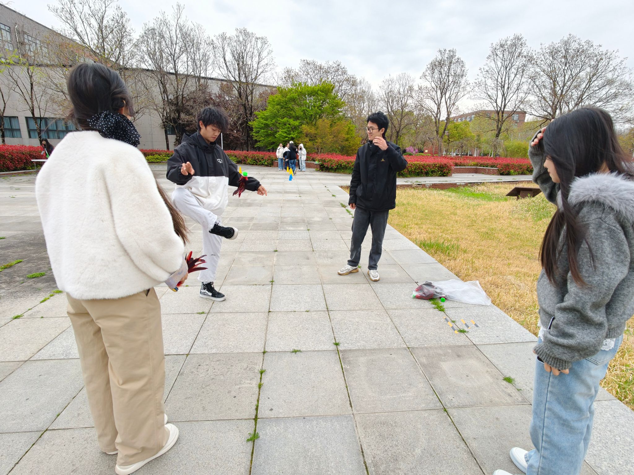 此次趣味运动会主题为“寻春记”,共设三个特色环节。在踏青寻春·团队定向赛中,大家被分为六组,四人一组开展团队协作,依次完成柳枝主题简笔画、长筷夹“青团”(乒乓球)、围圈踢毽、纸杯搭塔四项打卡任务。一开始不少同学没能掌握技巧,乒乓球频频夹不稳、掉落,在不断尝试后大家逐渐熟练,顺利完成挑战。其中围圈接力踢满十个毽子成为全场公认最难项目,多个小组在此停留许久,不少同学忍不住感慨:“这个项目也太考验配合了!”尽管难度不小,各小组依然默契配合、全力冲刺,裁判结合任务完成质量与总用时综合排名。稳运青团·精准接力赛中,五人为一小组,分工完成长筷夹球、背靠背夹球、球拍颠球接球三段“青团”传送,全程统一计时,按总用时长短排名,考验着团队的协作力与专注力。比赛过程中,有一组配合格外默契,完成时间远短于其他小组,引得现场同学阵阵惊呼。可能因为现场气氛过于热烈,春日小雨也忍不住来凑热闹,最后的春日绘卷·创意协作赛环节只能转战室内,但这丝毫没有影响大家的参与积极性。在场同学沿用此前分组,在15分钟内用彩笔、树枝、花瓣等材料,现场完成以“春”为主题的创意画。各组作品风格鲜明、创意十足,评选时大家七嘴八舌、各抒己见,都坚信自己的作品是最棒的,现场气氛热烈欢乐,最终由融媒体中心指导老师谷小川对所有画作进行评选排序。三个环节均采用积分制,各环节独立排名,各组按名次由高到低累计积分。