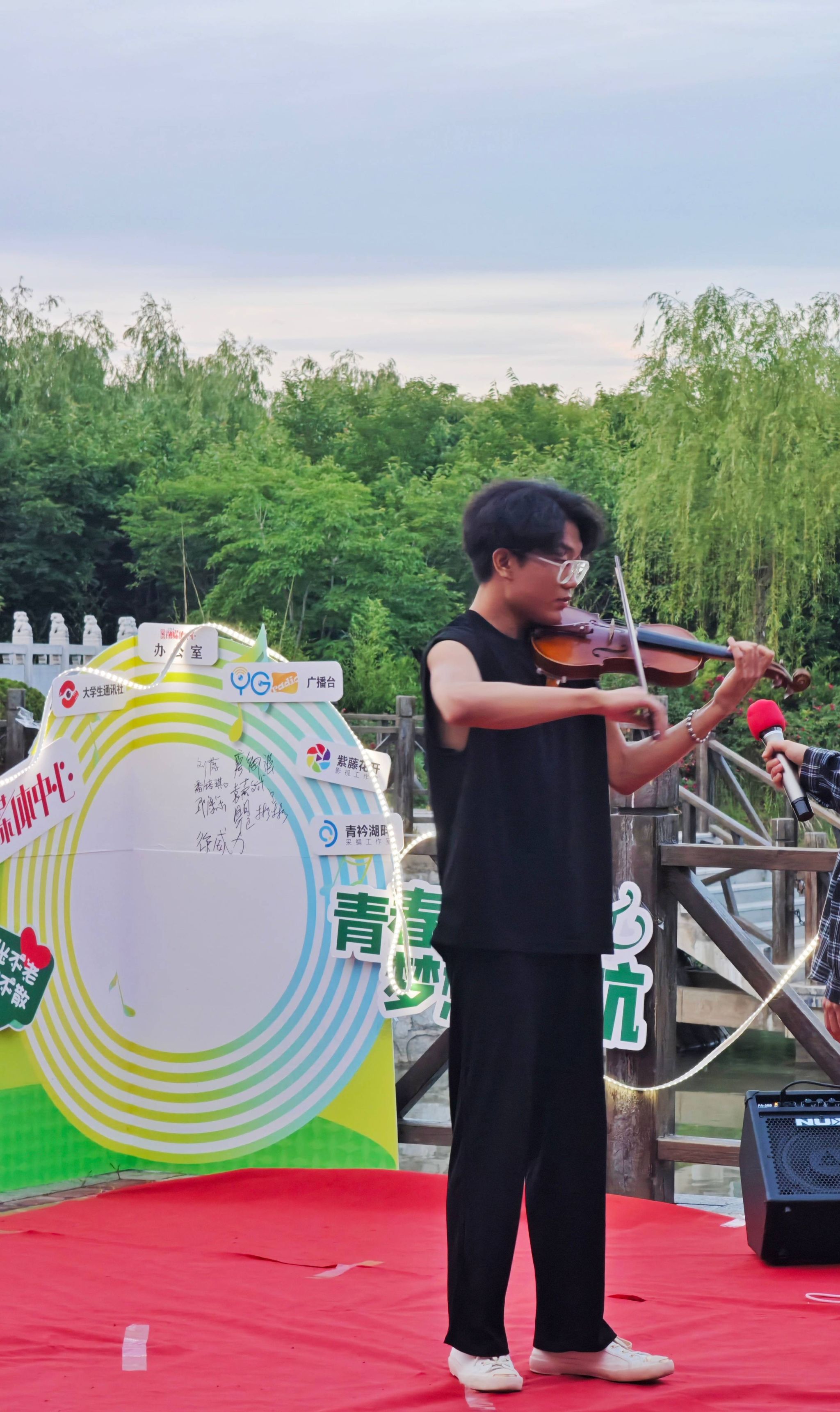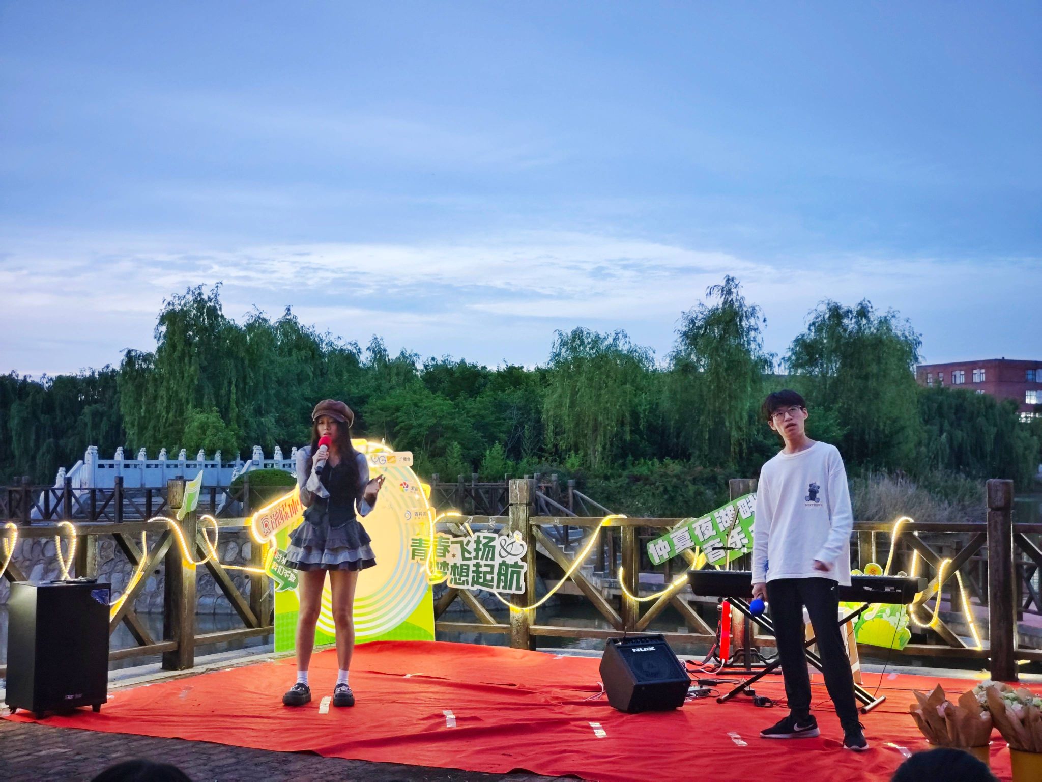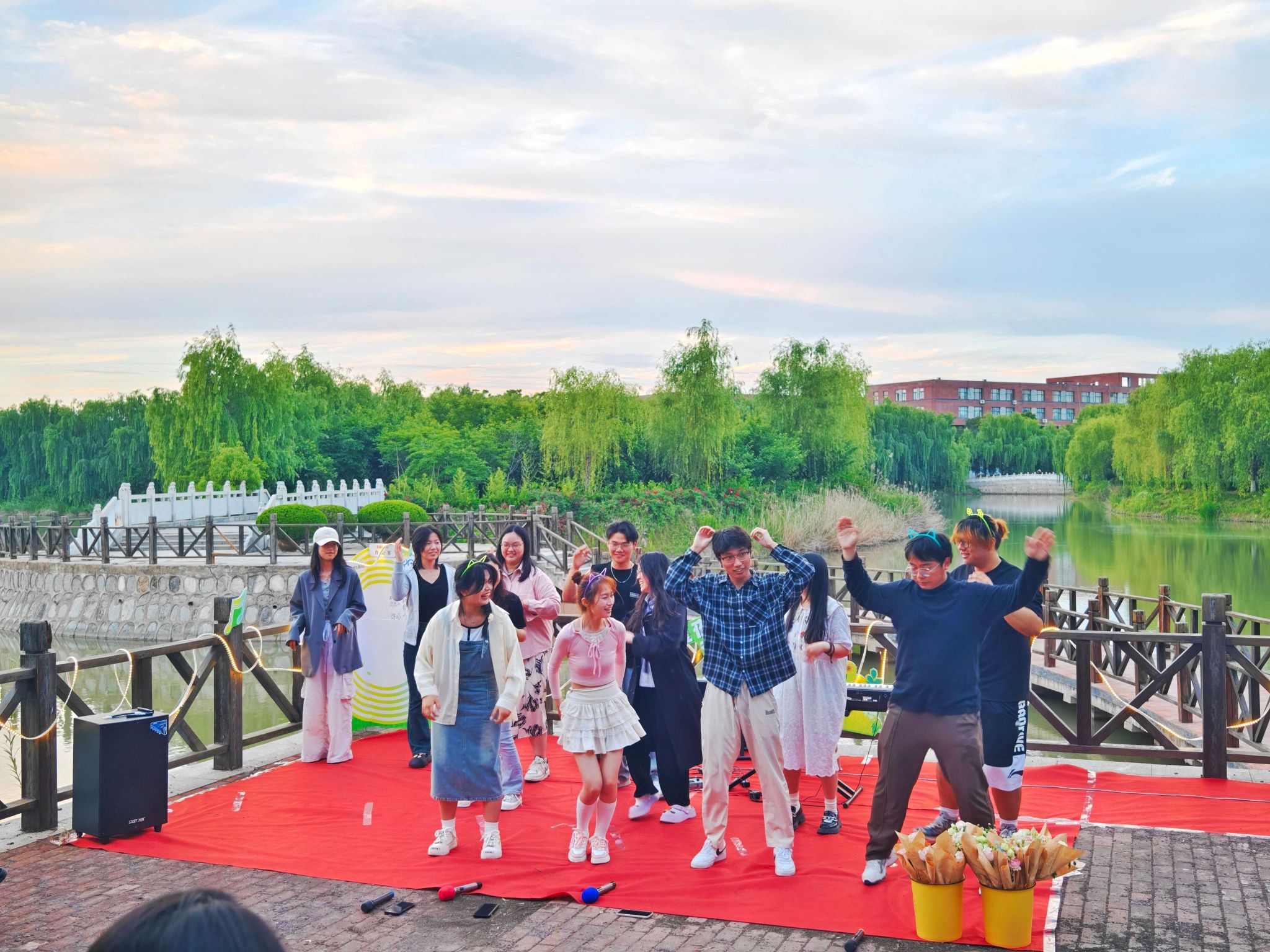 6月1日,盐城工学院融媒体中心在希望大道校区湖心岛附近举办了一场“歌以朗朗,情也依依”仲夏别情湖畔音乐会,融媒体中心全体通讯员、曾在中心任职的毕业生代表和指导老师参加。