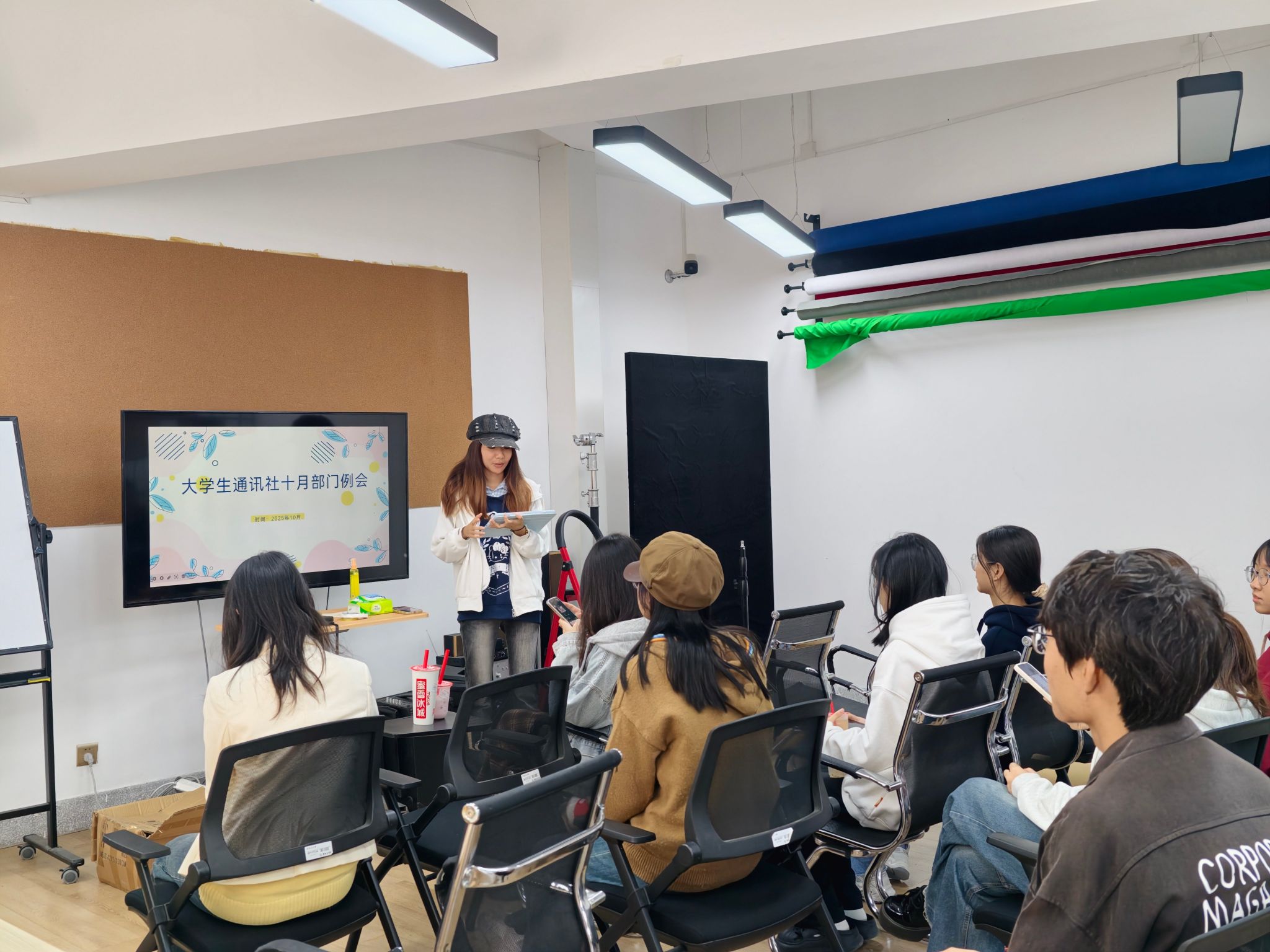 10月29日下午,学校融媒体中心大学生通讯社在希望大道校区仁和楼C314召开十月部门例会。会议由通讯社副部长徐婕主持,融媒体中心指导老师江莹到场指导,通讯社十余名成员参会。
